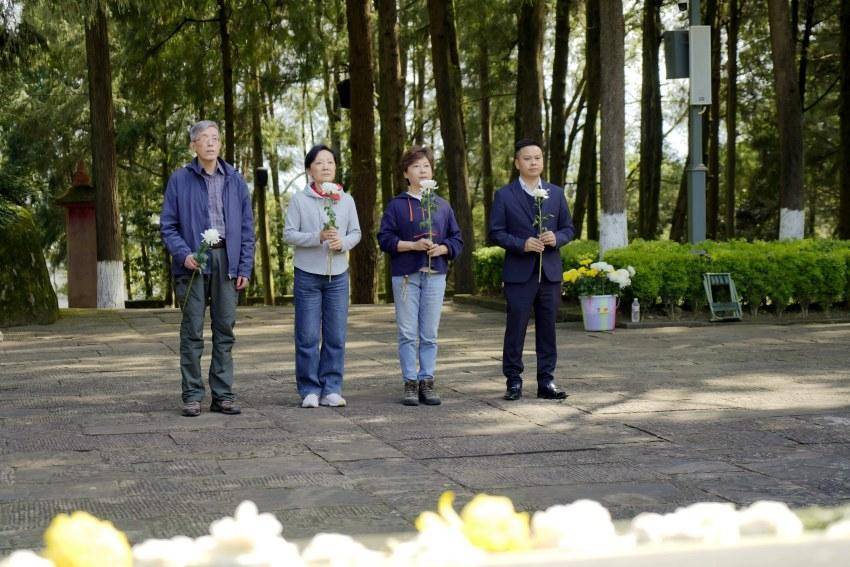 2026年3月27日,红军后人楼晓斌(左一)与同行好友在四川省巴中市通江县川陕革命根据地红军烈士陵园向革命烈士敬献菊花。胡鹏供图3月27日,清明节来临之际,位于巴中通江县的川陕革命根据地红军烈士陵园迎来一位远道而来的特殊祭扫者——来自上海的红军后人楼晓斌。他跨越千里奔赴这片红色热土,以朴素仪式缅怀革命先烈,用实际行动践行红军精神的传承使命。