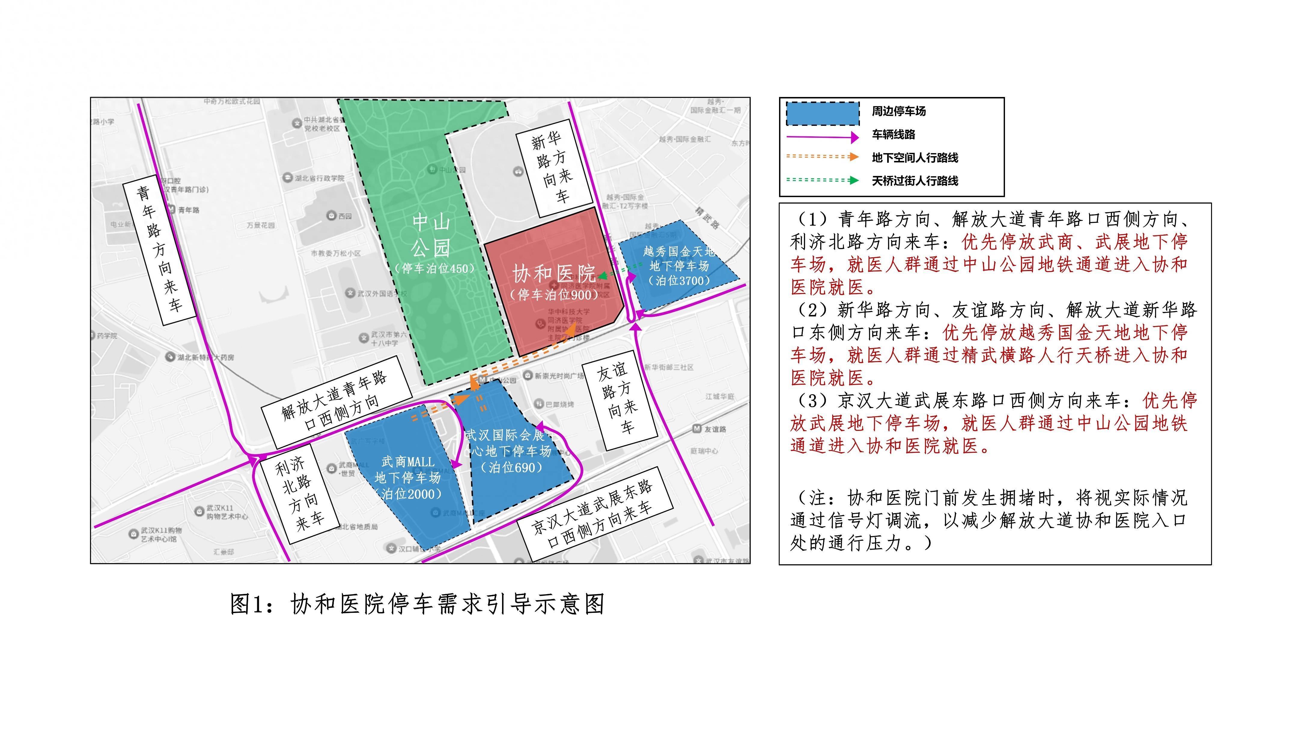 就医车辆可根据高德地图等导航平台指引,选择最优路线前往,避开拥堵节点。如遇就医通道排队,可优先选择周边停车场停放,避免在医院门口长时间排队造成拥堵。其中,从青年路方向驶来的车辆,可就近停靠武汉国际会展中心(武展) 停车场或武商广场停车场,停放后通过地下通道直达医院门诊,切勿横穿马路;从新华路方向驶来的车辆,可停靠越秀・国际金融汇(国金) 停车场,停放后通过斑马线前往医院就诊。
